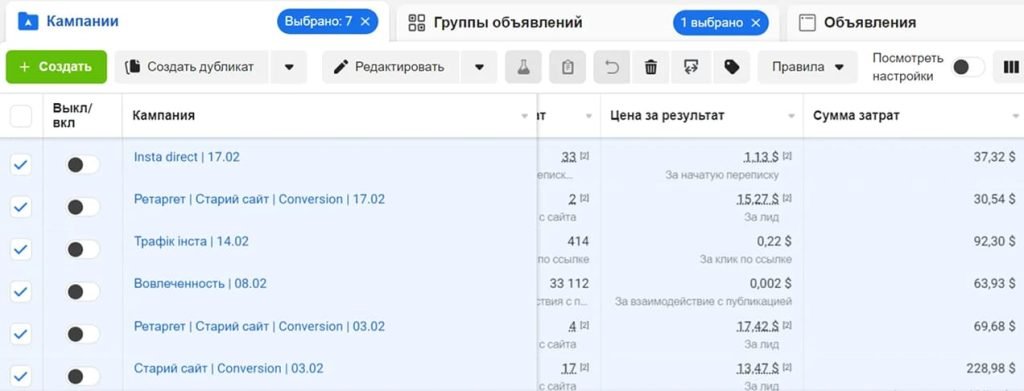 Переді мною працював інший таргетолог, тому багато часу для тестування гіпотез не знадобилося – одразу розумів що потрібно робити. Зробили якісні відеокреативи, обрали аудиторії які на мою думку мали спрацювати та ретаргетинг аудиторії (в них була круто прокачана інстаграм сторінка і вони давно в рекламі, тому ретаргетинг це must have).